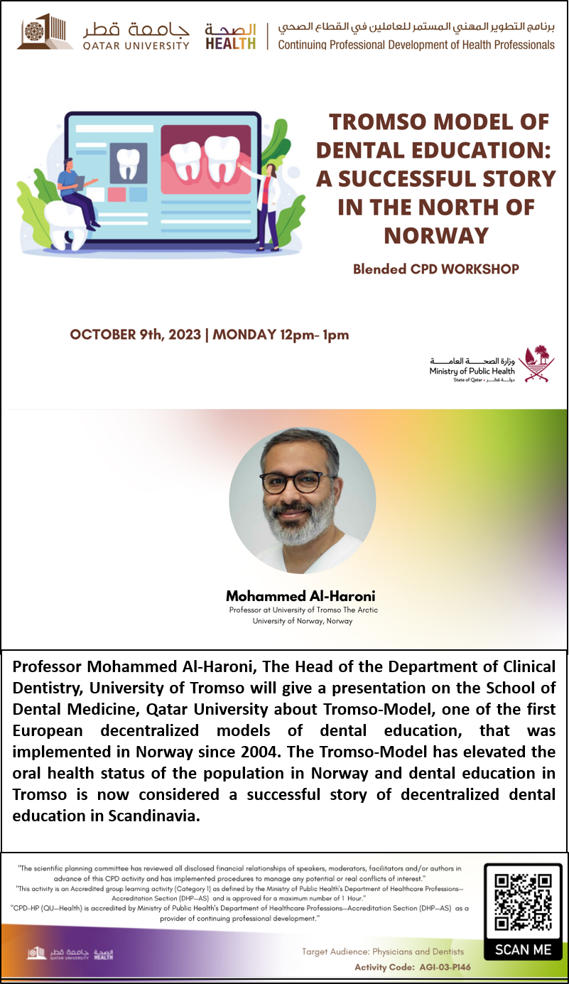 9 October 2023Dr. Manal MatougProf. Mohammed Al-Haroni Tromso Model of Dental Education: A Successful Story in The North of Norway