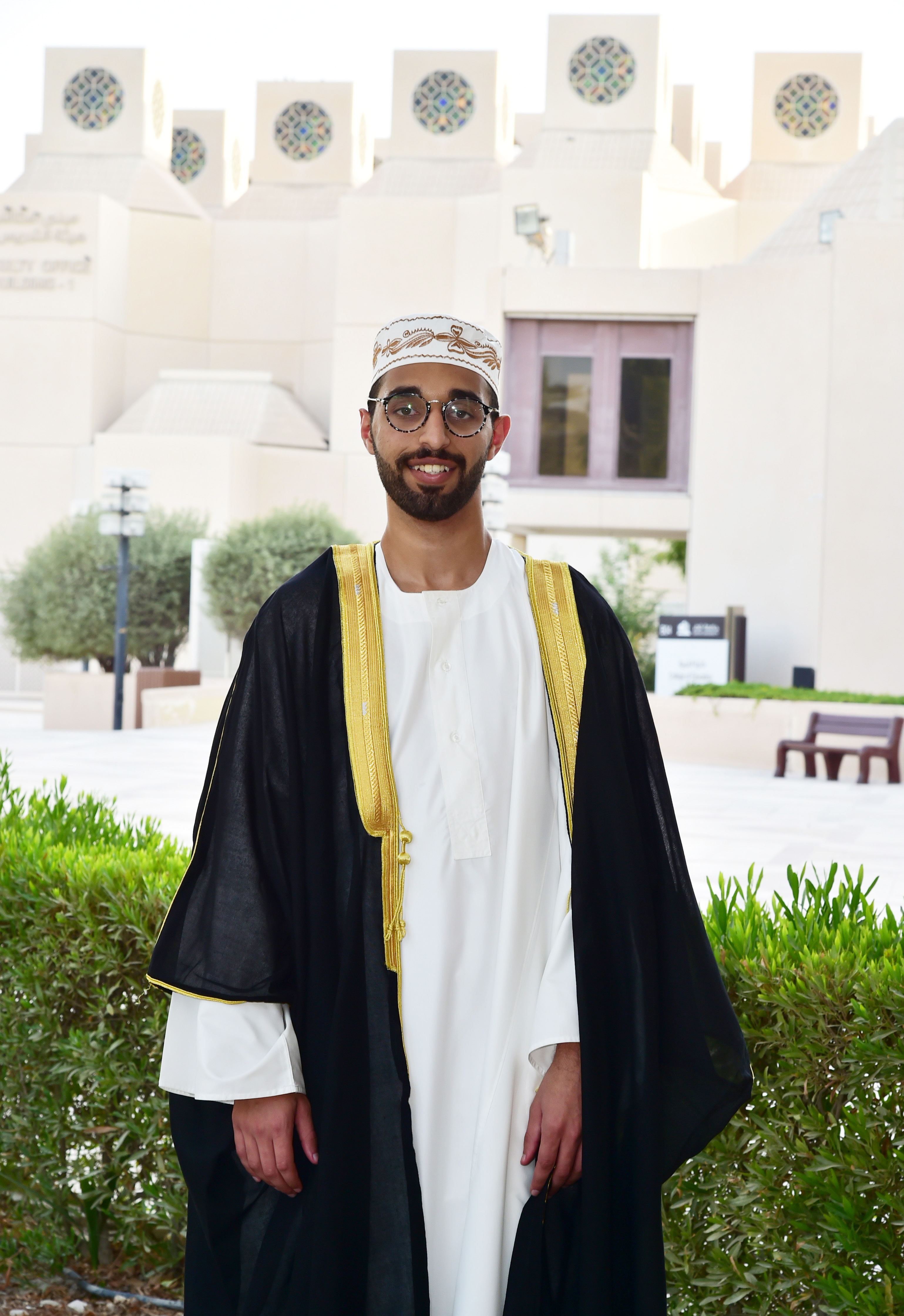 The male graduate uniform is the Qatari bisht (black color) as a unifying symbol for all graduates; it can be obtained from the popular markets in Doha, and the graduates must adhere to wearing the bisht at the graduation ceremony.