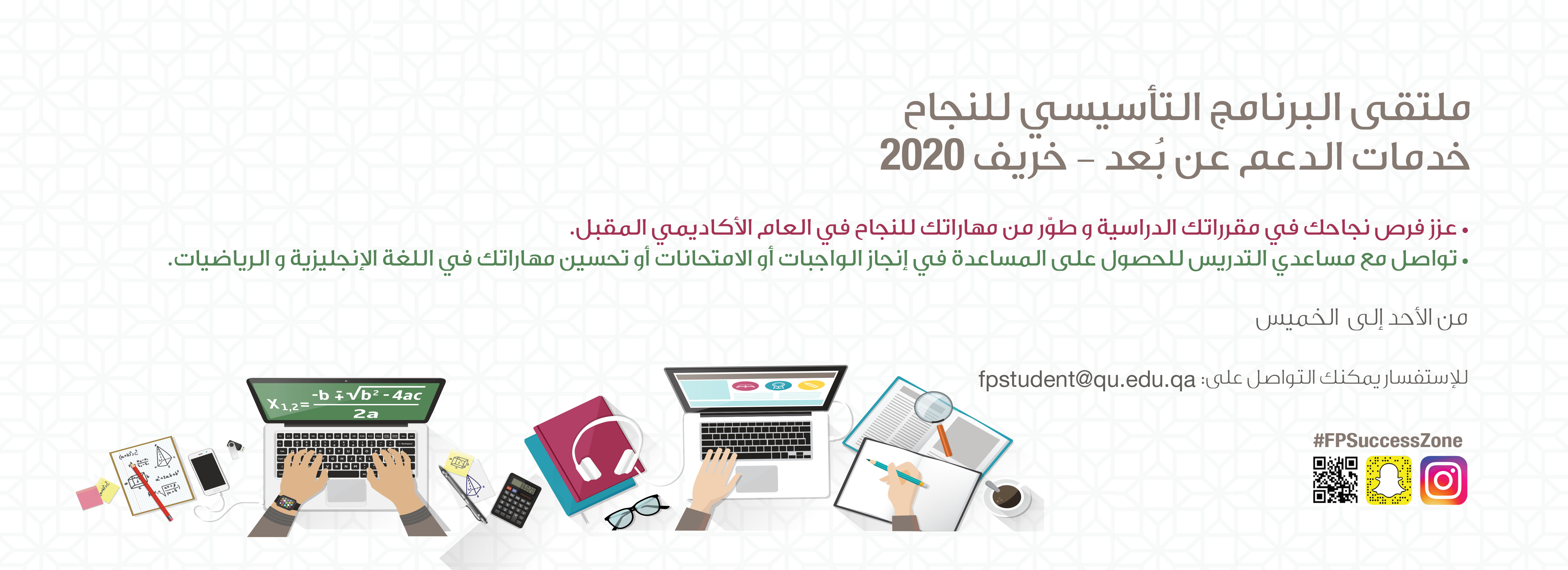 For any inquiries: (fpstudent@qu.edu.qa || fpsucesszone@qu.edu.qa)